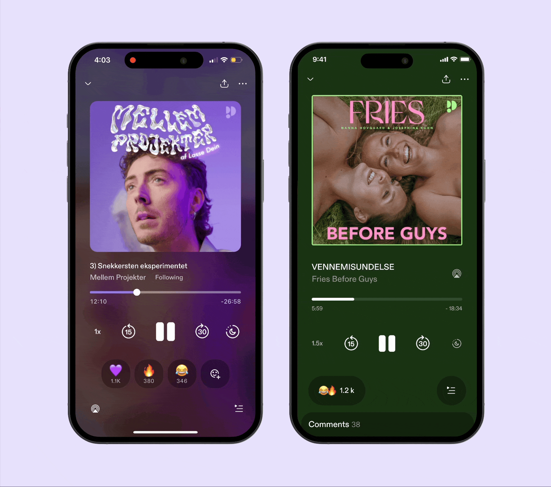 In early 2024, Podimo faced a "cold start" problem. While we had basic features like Reactions and Comments, they were hidden and underutilized, with weekly engagement stagnating around <9%. User research revealed a critical disconnect:
